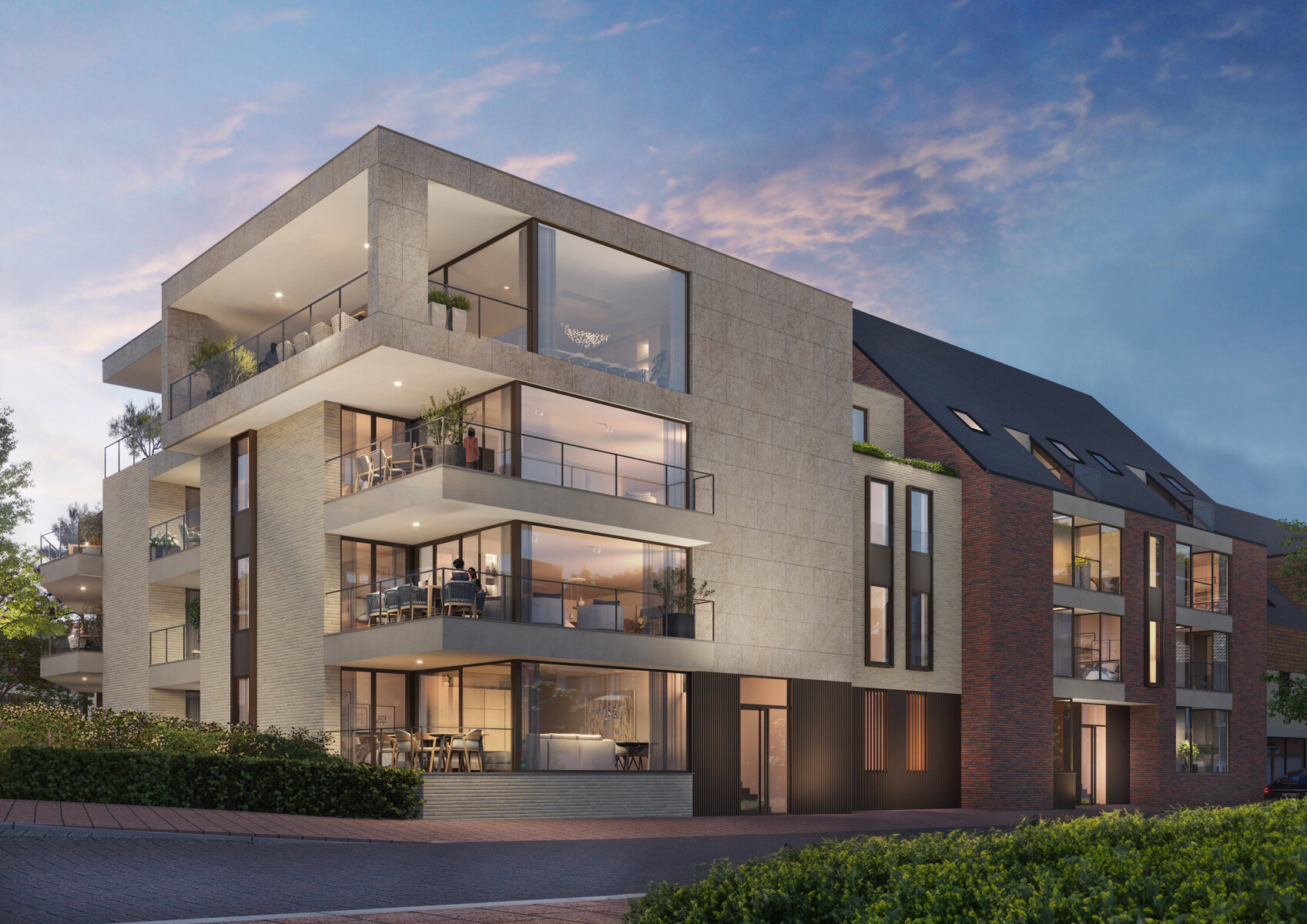 Hof ter Linden, 42 stijlvolle appartementen in het centrum van Diepenbeek op de hoek van de Wijkstraat en de Kloosterstraat.